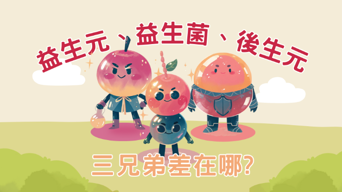 從「益生三兄弟」影片了解益生菌(Probiotics)、益生元(Prebiotics)與後生元(Postbiotics)的黃金三角關係。
